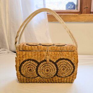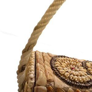Cute and unique one of a kind handmade handbag vintage from the 1950s-60s! This purse is covered in small seashells to create an elaborate pattern. The base of the purse is wood and it is lined inside. This purse is missing a few seashells (see photos) and the lining has a stain inside, but overall it is such a unique and fun piece in great condition!