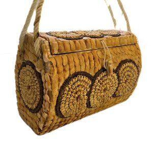 Vintage Handmade Wood & Seashell Purse OOAK Beach Retro Boho Handbag