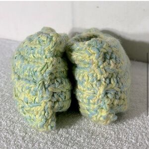 Vintage Handmade Yellow Green Crochet Knit Slippers
