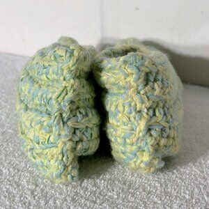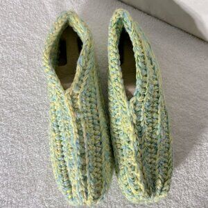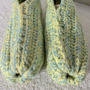 Vintage Handmade Yellow Green Crochet Knit Slippers