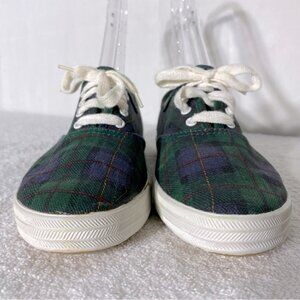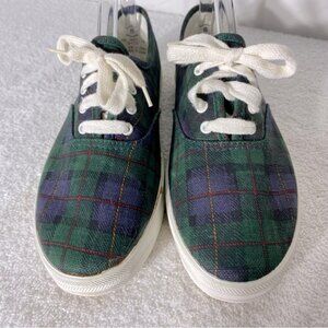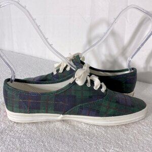 Vintage Hanes Her Way Green Blue Plaid Canvas Lace Up Sneakers 8