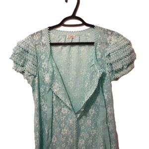 Condition: Excellent vintage—no visible flaws; sleeves maintain tight elastic; lace is intact and beautifully preserved.