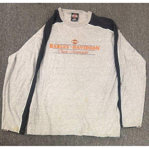 Vintage Harley Davidson Long Sleeve T-Shirt Mens L Grey USA Made Dover Ohio
