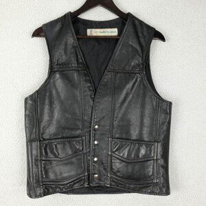 Vintage Harley Davidson Vest Mens Medium Black Leather Eagle AMF Biker