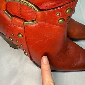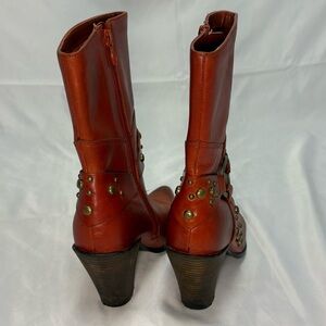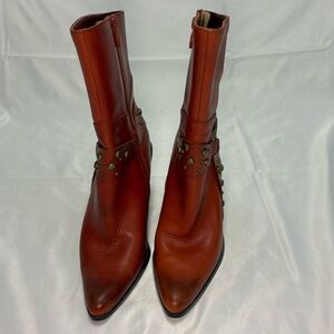 Vintage Harley Davidson Women’s 7.5 Burnt Orange Harness Heeled Boots Side Zip