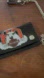 Unisex wallet that will hold cards and bills. Foldable, and suitable for carrying in your hands or a bag. Can clip to belt loop with silver metal chain.