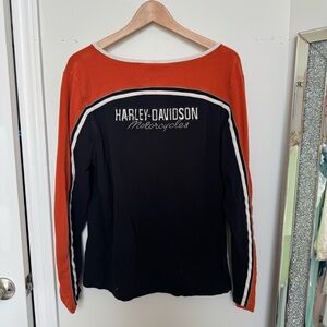Vintage Harley-Davidson Zip Front Long Sleeve – Black & Orange Racing Style 1W
