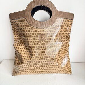 Vintage Harpel Florance Monogram Print Fold Over Clutch to Shopper Bag