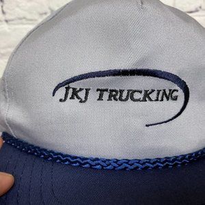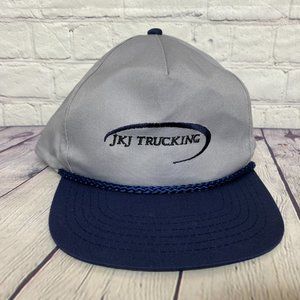 Vintage Hat Cap Snapback Gray Navy Blue Bill JKJ Trucking Rope Embroidered Logo