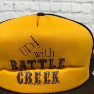 Vintage Hat Cap Snapback Yellow Brown Trucker Mesh Up with Battle Creek One Size