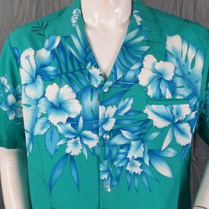Vintage Hawaiian Shirt - Large Floral Pattern on Teal Base - Men's Large