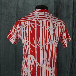 Vintage Hawaiian Shirt - Red and White Bamboo Pattern - Men's Small