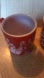 4 Child-size mugs with Native American scenes such as Ceremonies, Drumming/Pow Wow, Hunting. Maroon in colour on the outside, white inside. Great condition- No chips. Minor wear around rim. Scratch on one mug (see photo). Approximately 3" tall.
