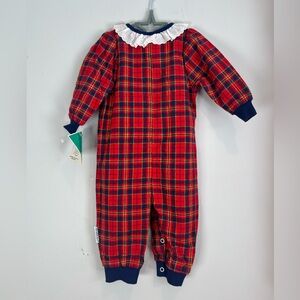 Vintage Healthtex Red and Blue Plaid One Piece Jumpsuit with Tags Size 12M