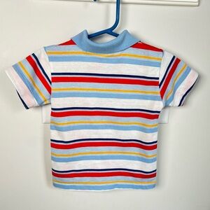 Colorful striped polo with blue, red, and yellow. Permanent Press. Vintage Healthtex tag. Made in USA.