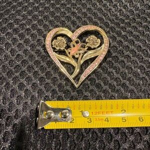Vintage Heart Floral Brooch with Pink Rhinestones & Butterfly Accent