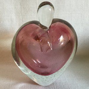Handblown Vintage heart shaped control bubble perfume bottle in a lovely pink and clear glass