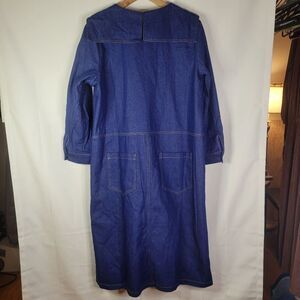 One of a kind blue denim dress unlike any you will find equivalents of in highstreet stores. Seems to be handmade possibly, or a custom, no signs of brand or care labels etc. Very well made. Such a unique collar. 2 rear back pockets like you would have on a pair of jeans! Quality heavyweight denim. EUC