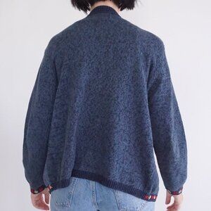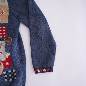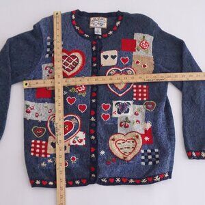 Vintage Heirloom Collections Blue Red Embroidered Valentine Heart Cardigan M