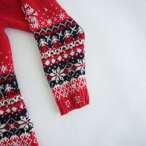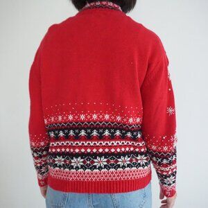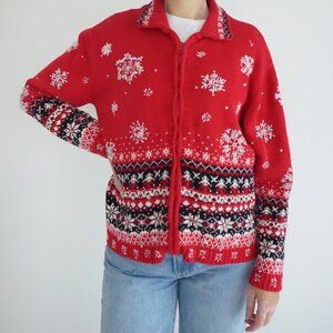 Vintage Heirloom Red Black Snowflake Beaded Ugly Christmas Festive Cardigan M