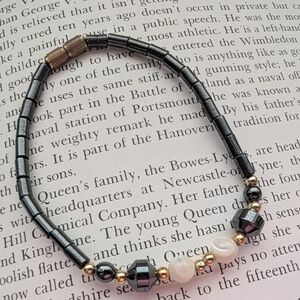 This elegant bracelet features a stunning combination of black and gold beads, perfect for adding a touch of sophistication to any outfit.