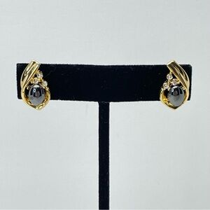 Vintage Hematite Gold Tone Crystal Peirced Earrings