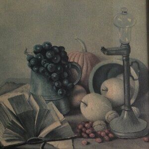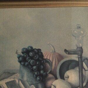 Vintage Henk Bos Still life print on board with vintage frame pumpkin grapes