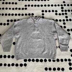 The Vintage Henley 1/4 Button Sweater in Men's XL is a classic piece perfect for various occasions, including casual wear and formal events. This sweater features a Henley neck, long sleeves, and a tight-knit design, making it both stylish and comfortable. Made from a blend of cotton and wool, it is a versatile choice for all seasons and can be machine washed for easy care. Showcasing a solid gray color with a retro 90s vibe, this sweater is a timeless addition to any wardrobe, representing a touch of nostalgia and preppy style.