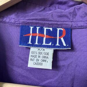 Vintage Her Silk Shirt Womens M 90s Purple Button Up