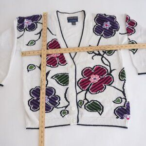 Vintage Herman Geist White Cotton Cardigan Floral Embroidered Grandmacore M