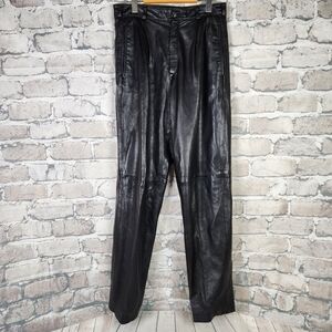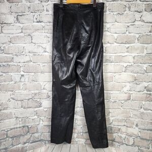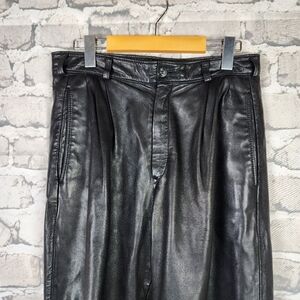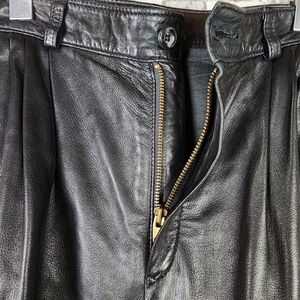 Vintage High Waist Black Leather Pant Pleated Front Taper Leg Lined Waist 28.5"