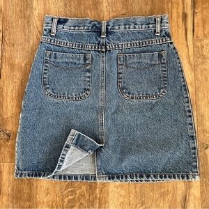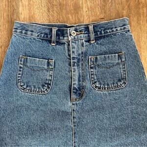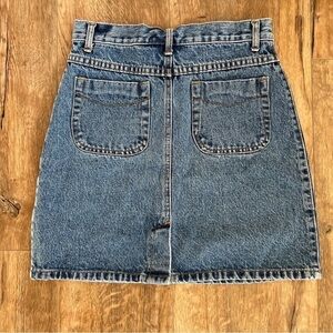 This vintage medium wash 100% rigid cotton mini skirt it’s the perfect addition for you summer festival wardrobe. Two front and back patch pockets and small back slit to enhance and show off your curves