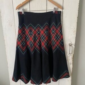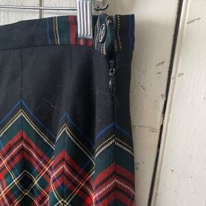Black plaid vintage swing skirt. Wool with silk lining. Amazing condition. No tears or pulls.