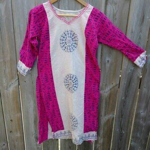 Vintage Hippy Top Block Print Tunic Shirt Music 34" Bust