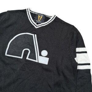 Vintage Hockey NHL Quebec Nordiques Black White V Neck Sweater Mens 2XL