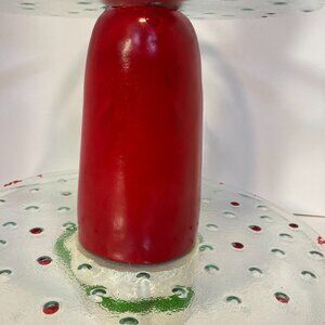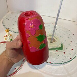 Item is in good used condition. Glass red coloring is fading/wearing off all over. Figure itself is in great condition overall. There are marks/scuffs/general storage/cleaning/use wear. Stand is stacked/threaded together. Design is somewhat loose and uneven due to the stacking of the trays.
