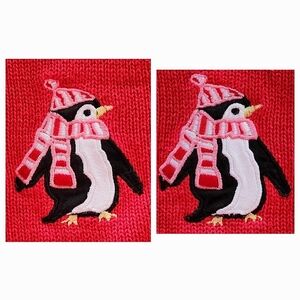 Vintage Holiday Cardigan Women XL Red Sweater Penguin Scandinavian Nordic