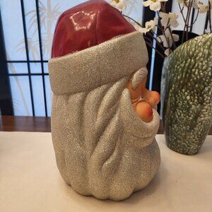 Vintage Holiday Christmas Blow Mold Santa Head w/ Glitter Sparkle Silver Beard