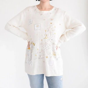 Vintage Holiday Editions Cream with Holiday Design Crewneck Sweater Size Medium