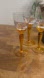 Beautiful vintage mid-century glassware set featuring clear bowls with amber twisted stems. Includes four larger wine glasses and four smaller cordial glasses, all matching in colour and sculpted stem design. Stylish and striking for holiday entertaining, bar carts, and retro décor.