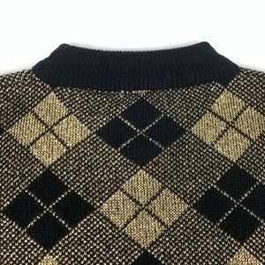 Vintage Holiday Time Christmas Sweater Gold Argyle