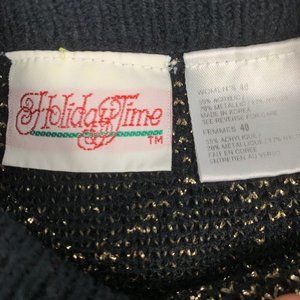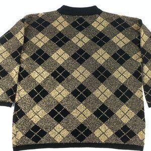 Beautiful Vintage 'Holiday Time' Oversized Knit Christmas Sweater Black & Gold Argyle Plaid M/L