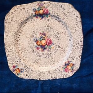 Vintage Hollinshead and Kirkham (H&K) Tunstall Gold Chintz Pattern Cake/Sandwich Plate.