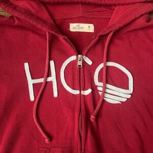Vintage Hollister burgundy full zip embroidered hoodie in a size medium.