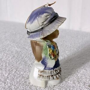 Adorable Holly Hobbie Christmas ornament featuring a blue dress and a floral hat. Perfect for collectors.