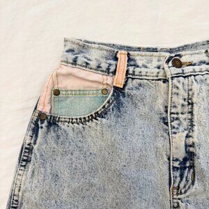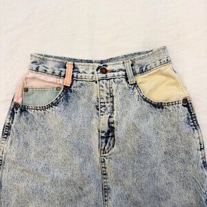 Vintage Hollywood Era Denim Skirt | Acid Wash Patch Pocket Mini