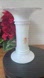 This classic vintage milk glass vase by Melitta Germany features a sleek cylindrical shape with finely ribbed vertical lines all around. Its minimalist design and luminous white finish make it an ideal piece for mid-century modern lovers, vintage collectors, or wedding decorators. A timeless and versatile piece of German glassware.