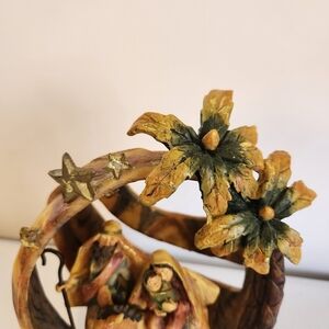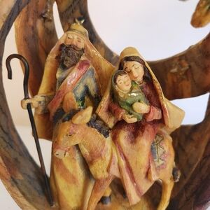Vintage Holy Family Bethlehem Christmas Nativity Resin Faux Coconut Decoration