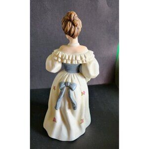This charming piece, hailing from the 1980s and manufactured in Taiwan, depicts a woman with an elegance that's both timeless and quintessentially Victorian. It's a perfect representation of romantic periods and styles, making it an ideal addition for any enthusiast of period-specific decor or those who appreciate the charm of bygone eras. This figurine, unboxed and ready to display, is a true testament to the artistry of the era.