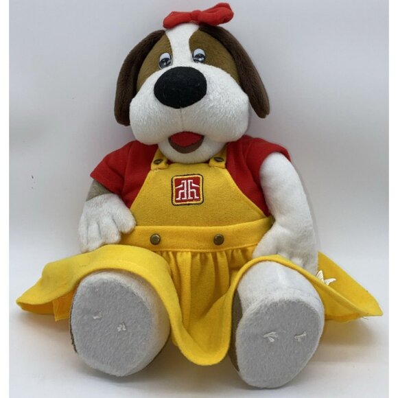 Discover a charming addition to any collection with the Vintage Home Hardware Mandy Mascot Plush Stuffed Animal Dog. Standing at an adorable 13 inches, this friendly plush toy embodies the delightful nostalgia of vintage advertising memorabilia, making it a perfect collectible for enthusiasts or a heartwarming gift for someone special.